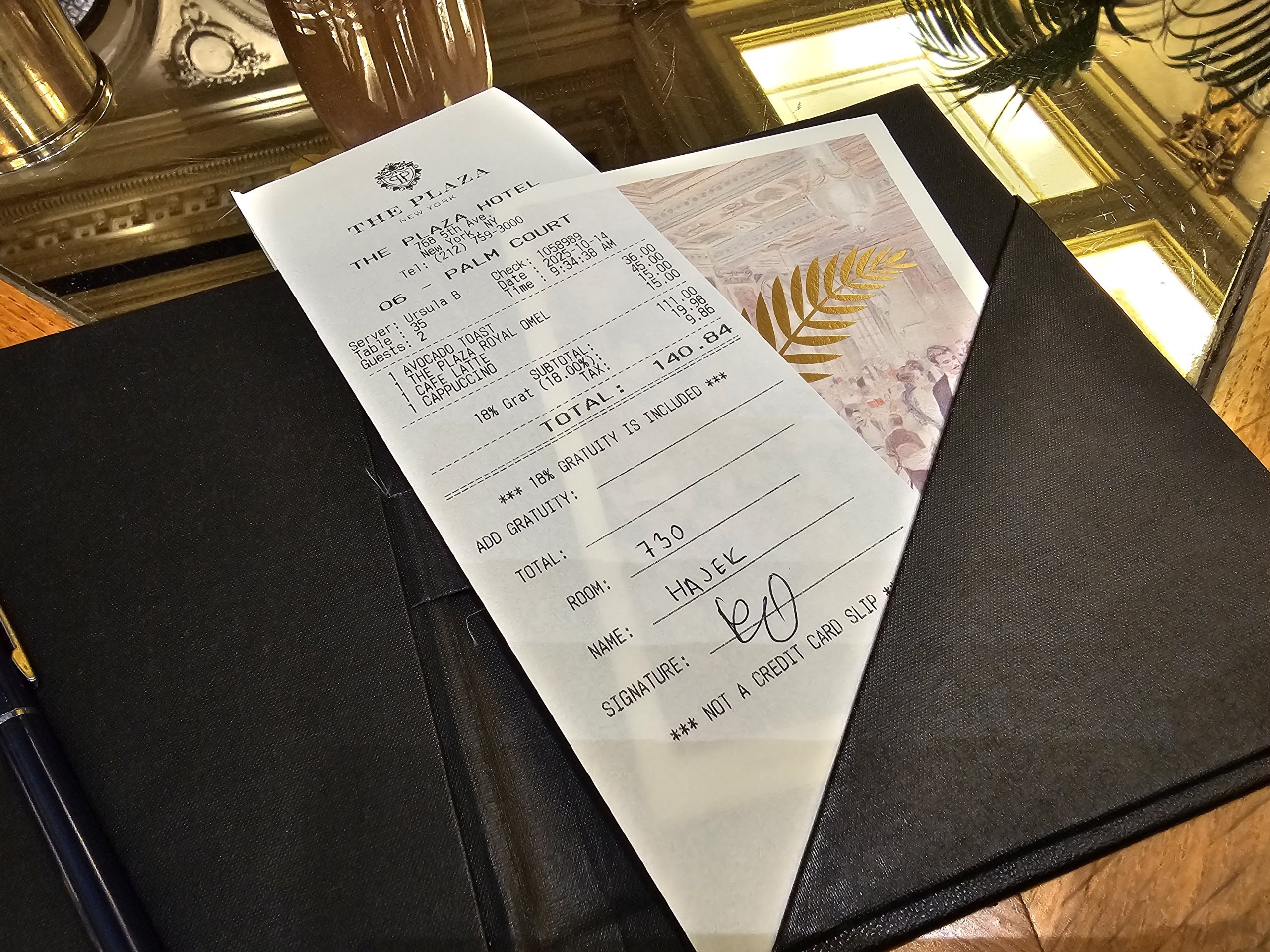 Siempre te dan una factura provisional después del desayuno, pero no la pagas. La propina del 18% ya está incluida en el precio de todos los artículos.