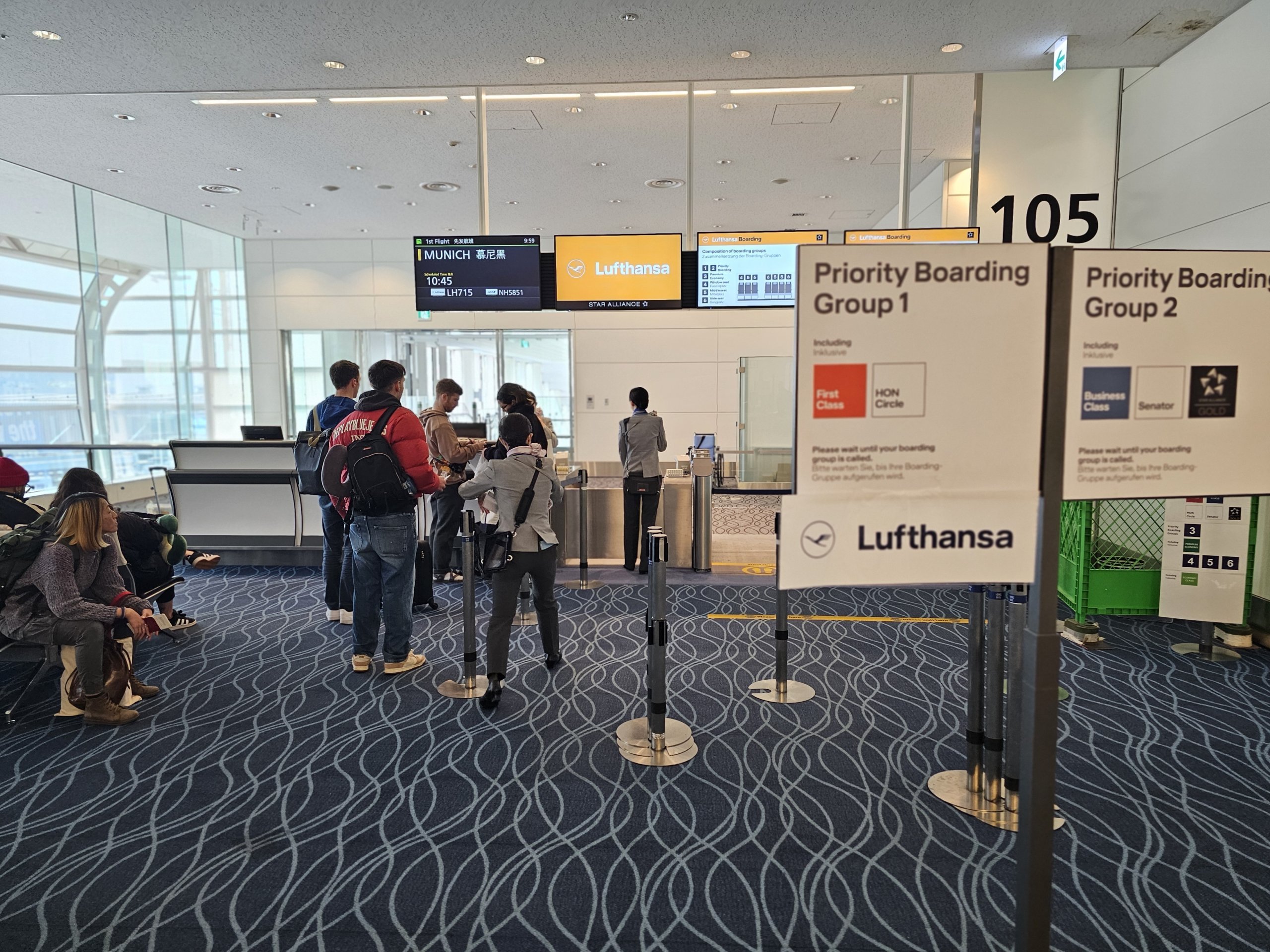 Como llevo dos maletas grandes, tengo que ir al mostrador de facturación. Por desgracia, Lufthansa no tiene mostradores automáticos en el aeropuerto de Haneda, así que tengo que esperar a que empiece la facturación.