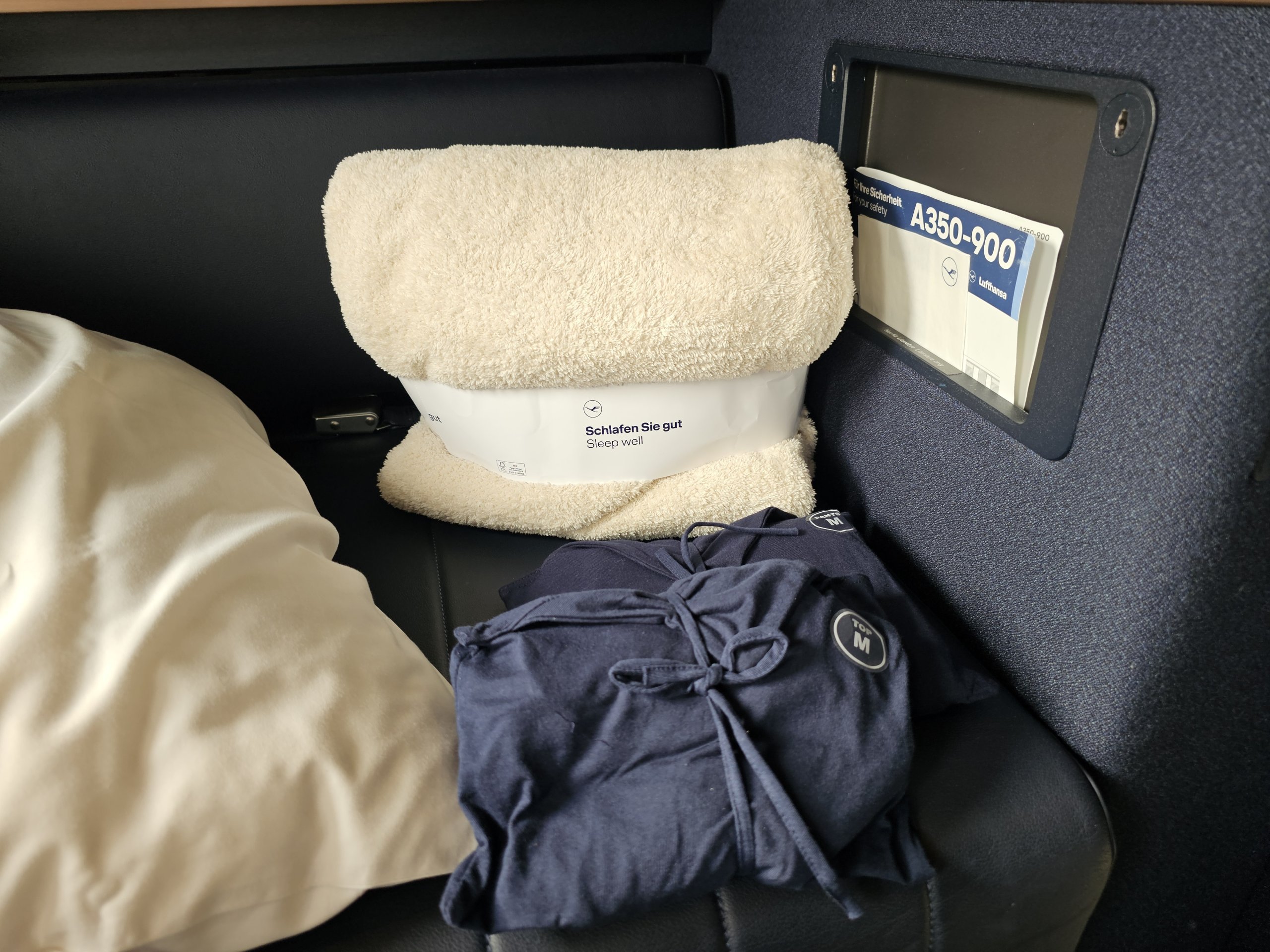 El asiento está equipado con un cojín y una manta extremadamente cómodos que se pueden utilizar en cualquier momento del vuelo. Para dormir, recibirá otra manta y ropa de cama de la tripulación.
