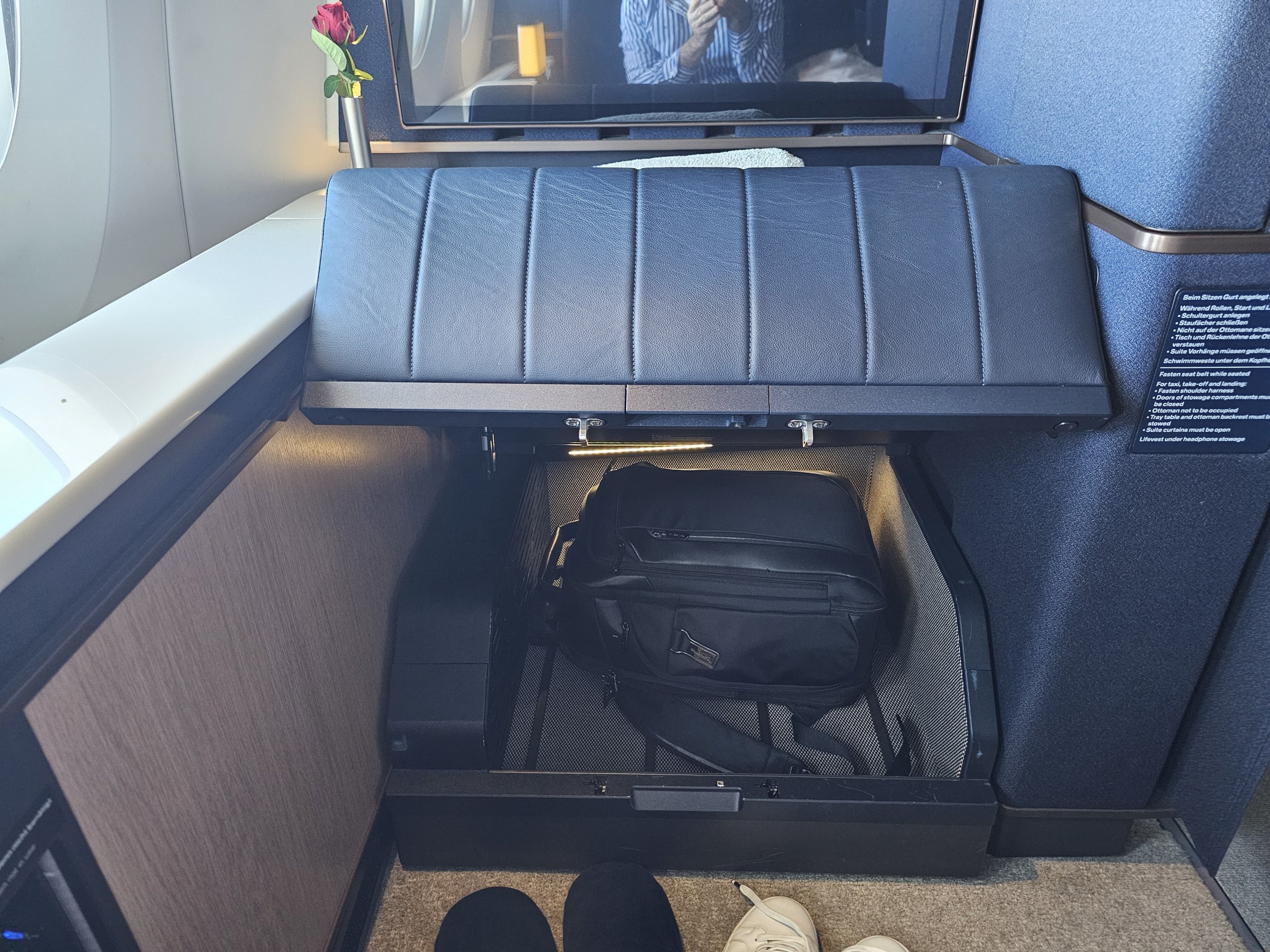En comparación con los asientos de la antigua Primera Clase, hay un poco menos de espacio para guardar cosas. Sin embargo, sigue siendo relativamente suficiente.