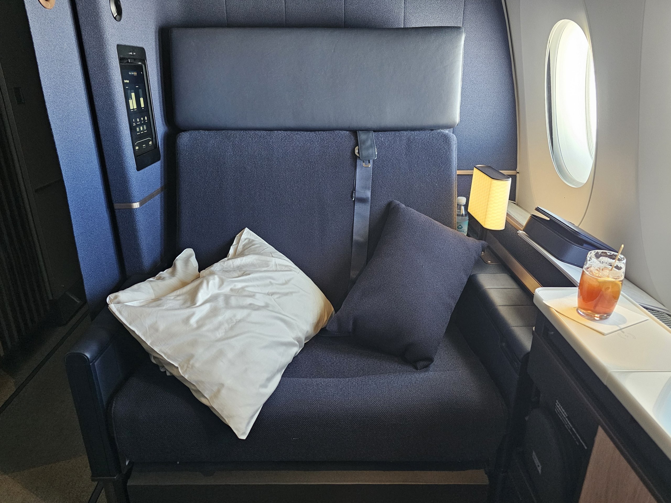 Volé allí en el antiguo producto en un Boeing 747-8 y de vuelta en el flamante Allegris First Class en un Airbus A350-900.