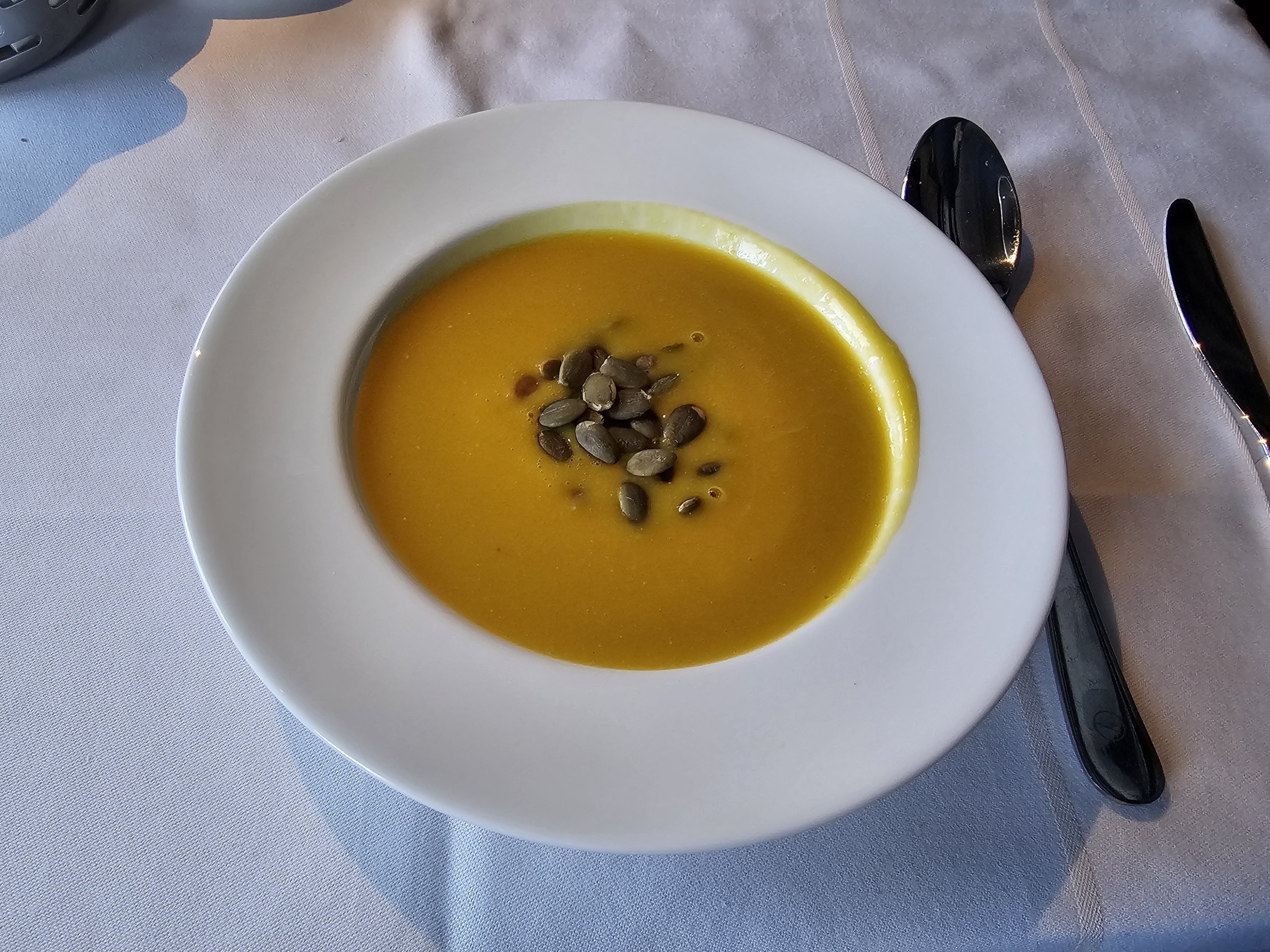 Antes de la comida tomo una estupenda sopa de calabaza y jengibre.