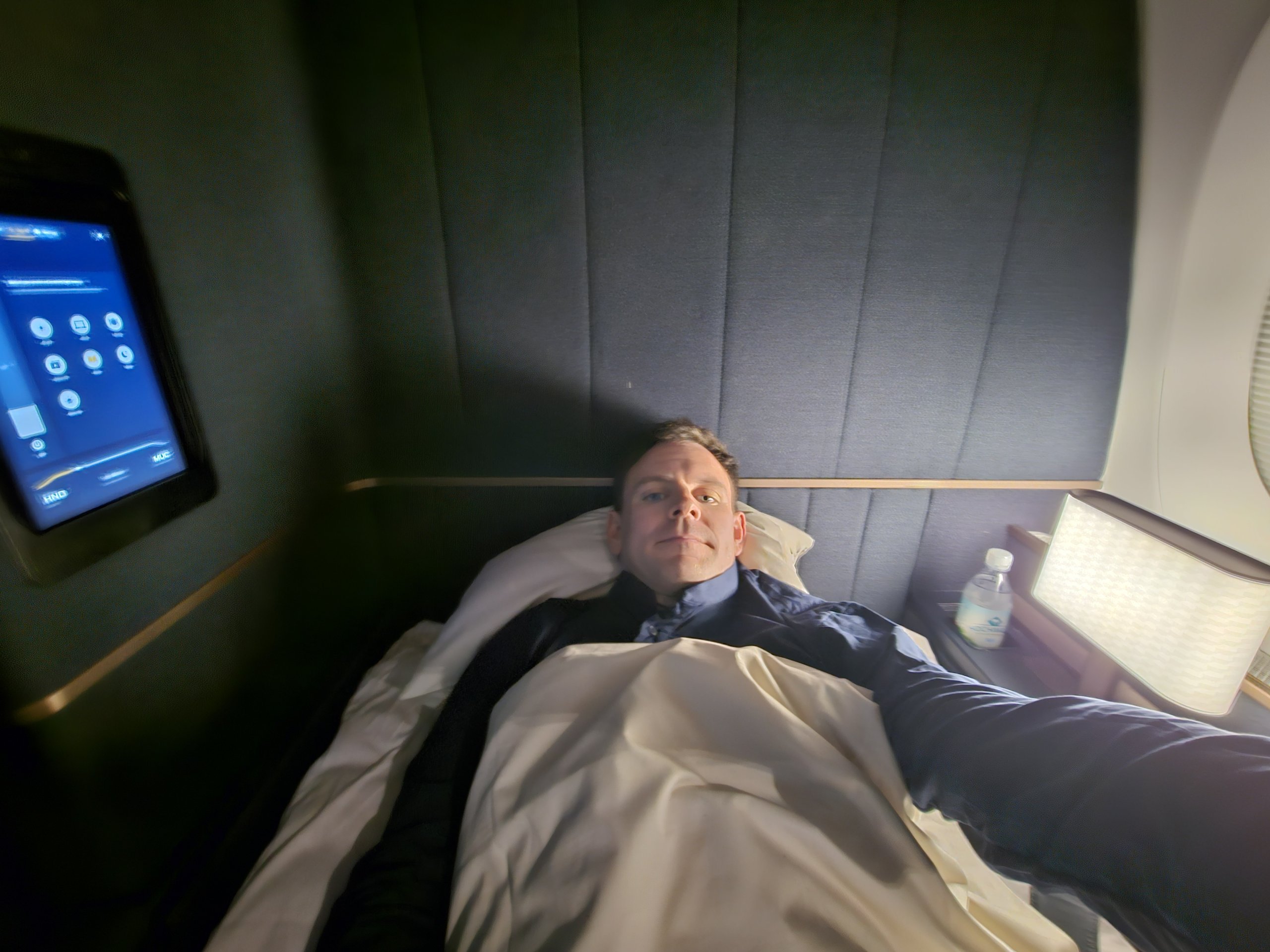 Tuve exactamente la misma sensación sobre la tripulación durante mi primer vuelo en Primera Clase de Europa a Japón.