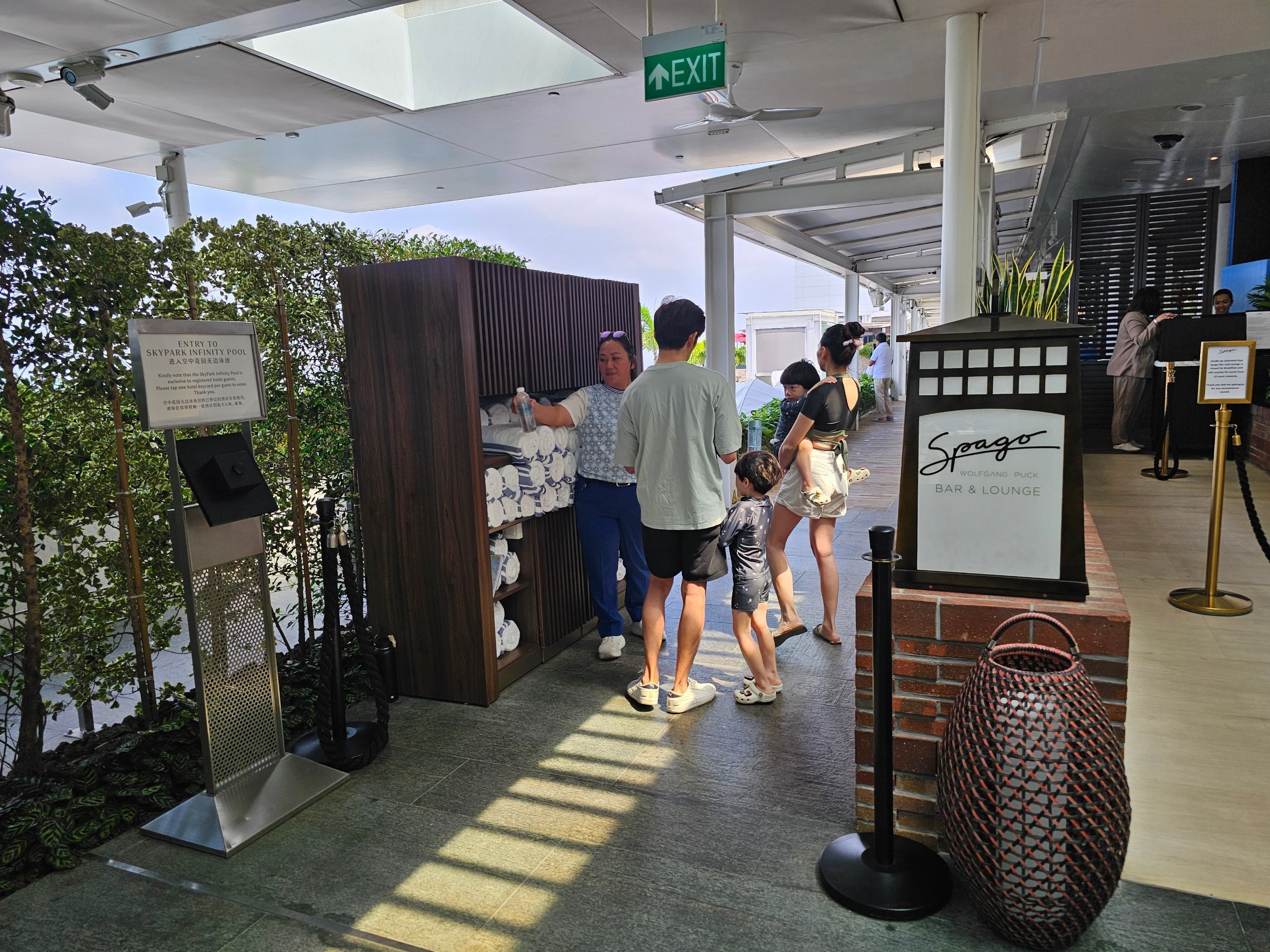 Desde lo largo de la piscina, el centro de Singapur está en la palma de tu mano. Y si caminas hacia el otro lado de la azotea, puedes ver Gardens by the Bay y cientos de cargueros al fondo en alta mar.