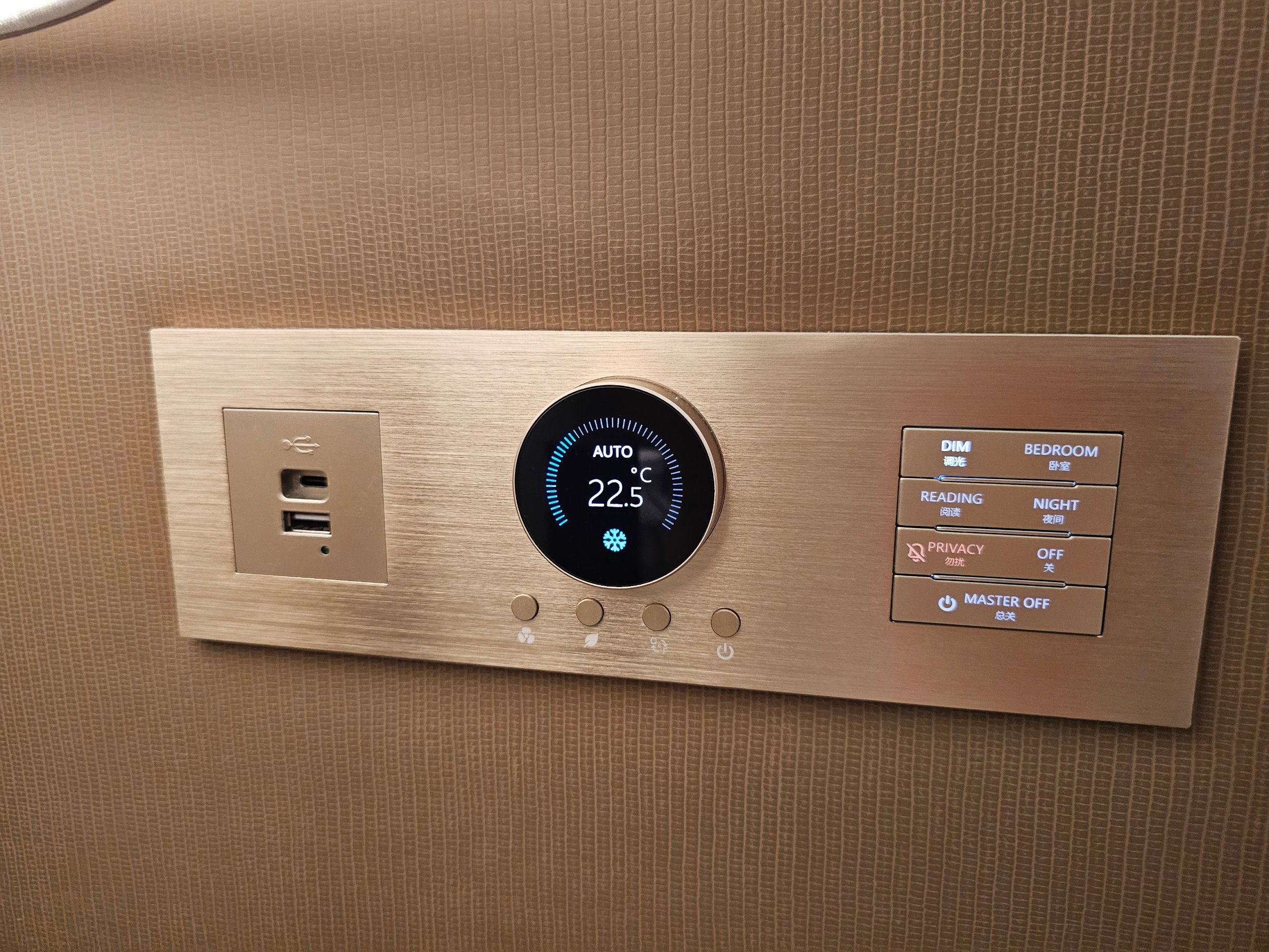 - cama de buena calidad y aire acondicionado silencioso (se puede controlar el aire acondicionado desde la cama, lo que no es precisamente estándar)