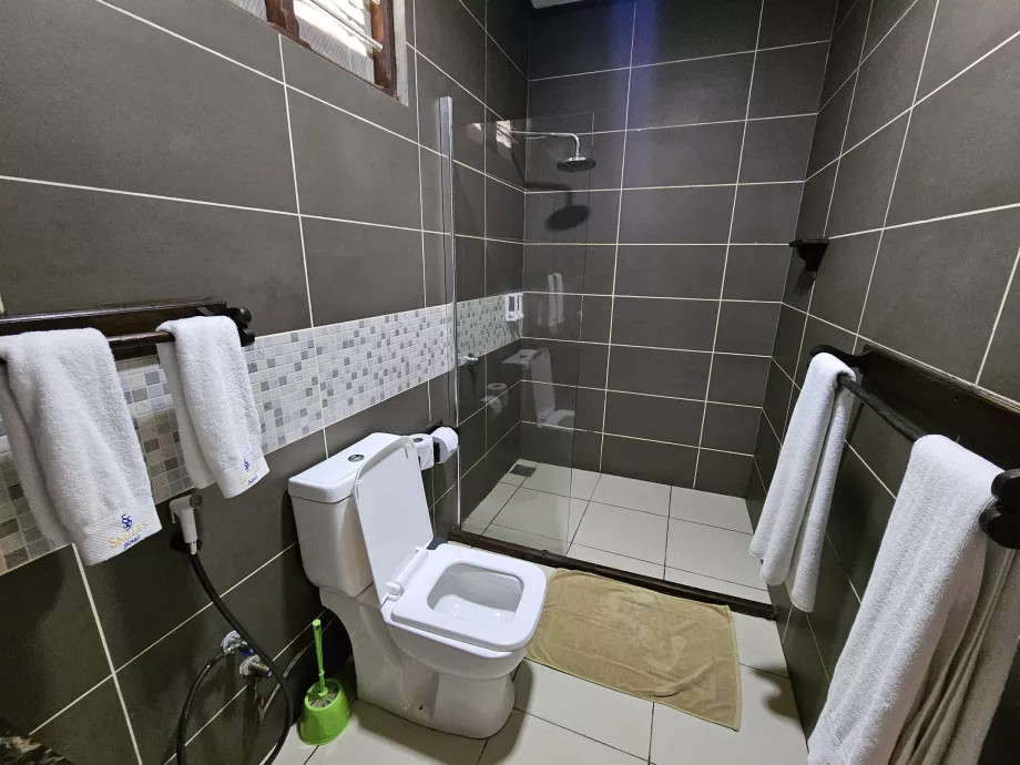El mayor problema que tengo es con el baño. El inodoro es claramente el más barato que podría ser y el asiento del inodoro no se queda en su lugar correctamente.