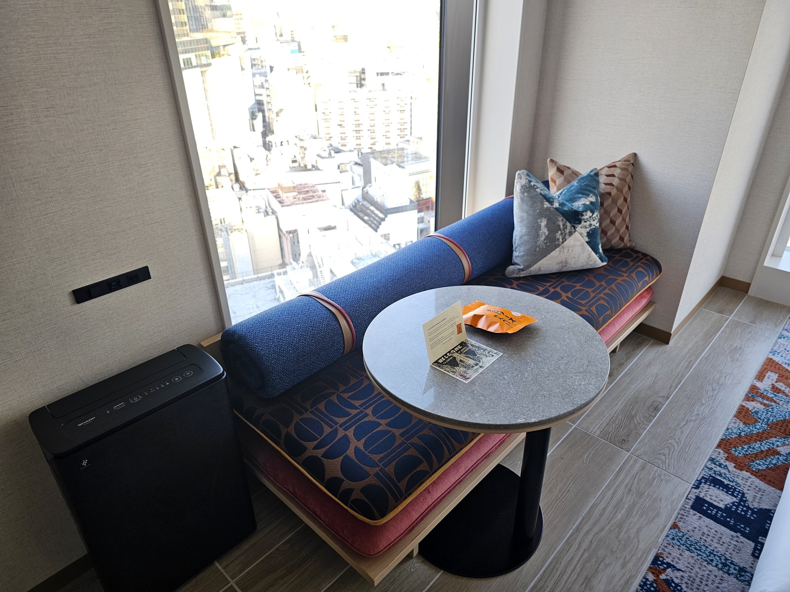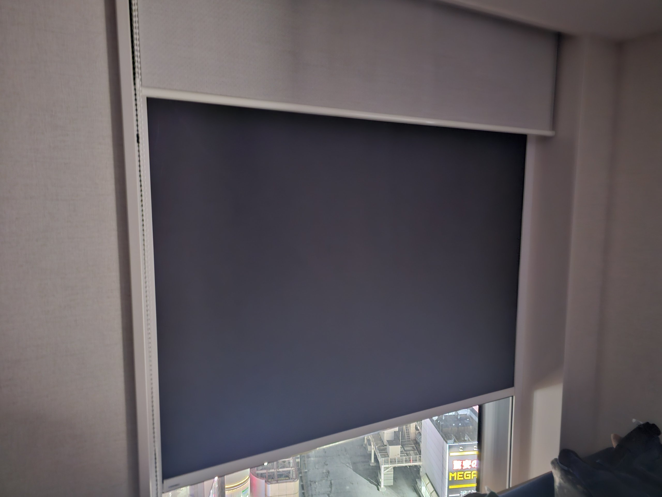 Como el horizonte de Tokio brilla toda la noche, me preocupa un poco la oscuridad de la habitación. Todas las ventanas tienen un parasol y una persiana 100% opaca, así que la habitación está completamente a oscuras por la noche.
